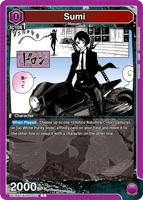 Description: [When Played] Choose up to one "Chihiro Rokuhira", "Iori Samura" or [Iai White Purity Style] affinity card on your field and move it to the other line or swap it with a character on the other line.