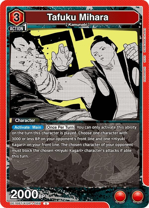 | Description: | [Activate:Main] [Once Per Turn] You can only activate this ability on the turn this character is played. Chose one character with 3000 or less BP on your opponent's front line and one "Hiyku Kagari" on your front line. The chosen character of your opponent must block the chosen "Hiyku Kagari" character's attacks if able this turn. |