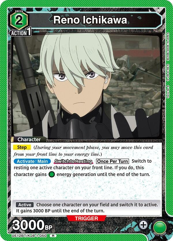 [Activate: Main] (Switch to Resting) [Once Per Turn] Switch to resting one active character on your front line. If you do, this character gains Green energy generation until the end of the turn. |