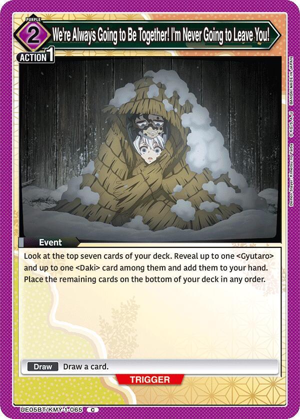 Look at the top seven cards of your deck. Reveal up to one "Gyutaro" and up to one "Daki" card among them and add them to your hand. Place the remaining cards on the bottom of your deck in any order.
