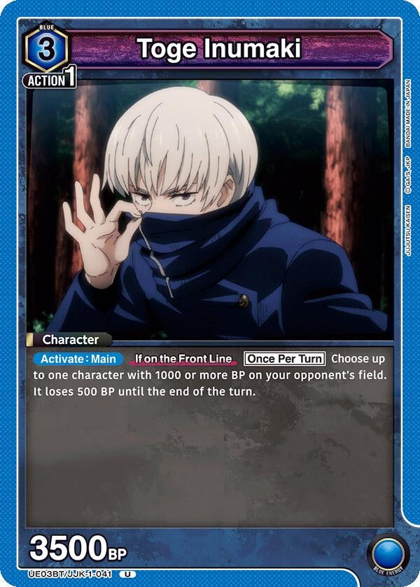 | Description: | [Activate: Main] (If on the Front Line) [Once Per Turn] Choose up to one character with 1000 or more BP on your opponent's field. It loses 500 BP until the end of the turn. |