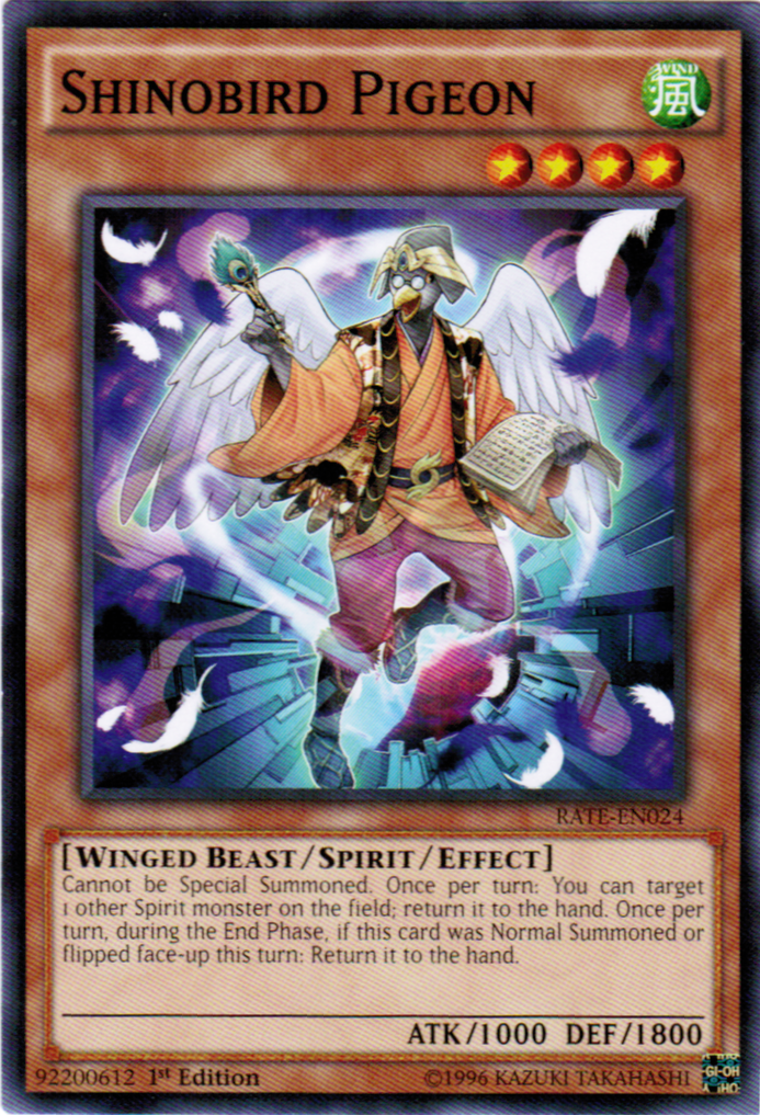 Cannot be Special Summoned. Once per turn: You can target 1 other Spirit monster on the field; return it to the hand. Once per turn, during the End Phase, if this card was Normal Summoned or flipped face-up this turn: Return it to the hand.