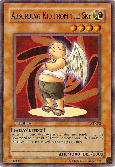 When this card destroys a monster and sends it to the Graveyard as a result of battle, increase your Life Points by the Level of the destroyed monster x 300 points.