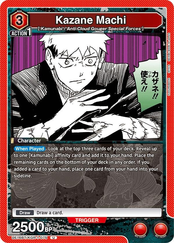 | Description: | [When Played] Look at the top three cards of your deck. Reveal up to one [Kamunabi] affinity card and add it to your hand. Place the remaining cards on the bottom of your deck in any order. If you added a card to your hand, place one card from your hand into your sideline. |